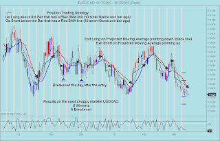 Here is the logic for a profitable position trading system, I coded the projected moving average indicator myself which is sold as part of a charting package by a scam company thats starts with the letter "v" for 20,000 $ :-)